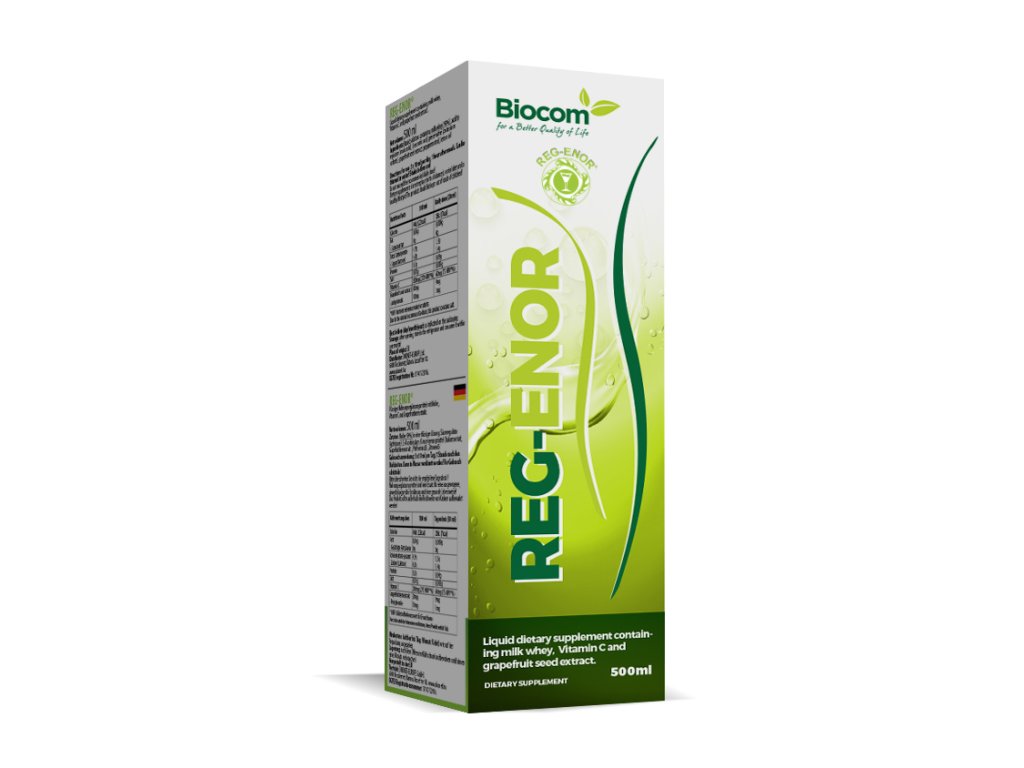 REG-ENOR je výživový doplnok, ktorý detoxikuje a regeneruje tráviaci systém. Tým zároveň posilňuje imunitu. Rovnako pomáha pri znížení hmotnosti.